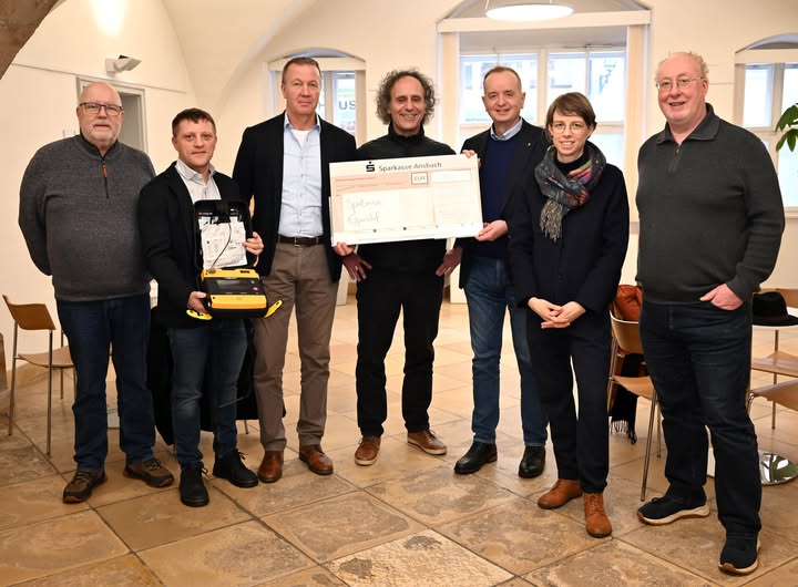 Die Bürgerstiftung für Kultur, Gesellschaft, Sport in Ansbach unterstützt mit der diesjährigen Ausschüttung den TSV Elpersdorf 1963 e.V.. Dies wurde im Rahmen der Stiftungsratssitzung entschieden und die Spende nun übergeben. Die insgesamt 1.262,47 Euro werden für eine Defibrillator verwendet. „Es ist sehr schön, dass wir dank der Bürgerstiftung den Sportverein unterstützen können und dank des Defibrillators möglicherweise Leben retten, in der Hoffnung, dass das Gerät nicht gebraucht wird“, erklärt Oberbürgermeister und Stiftungsratsvorsitzender Thomas Deffner.